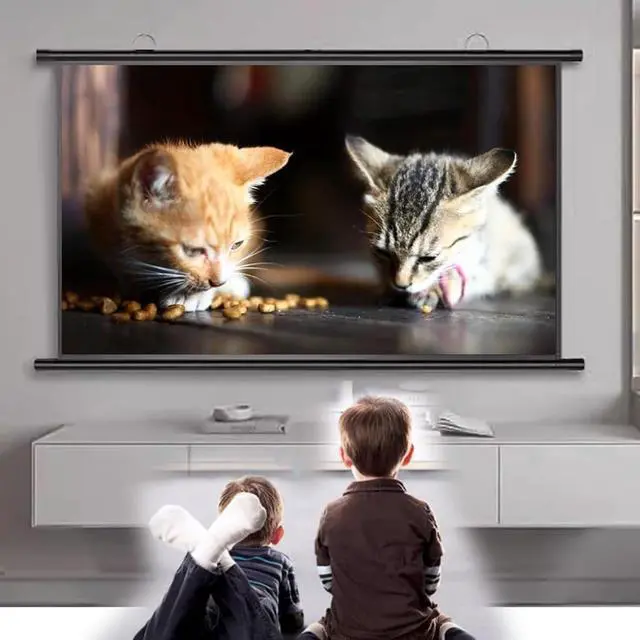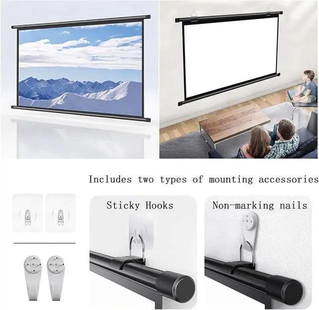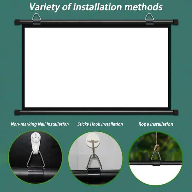 • Easy to use: Install on the wall or hang from the ceiling quickly and easily, manual pull-down function adjusts the screen height for better viewing. Easy to store and hide when not in use, saving space
