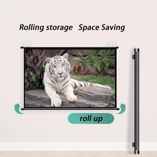 Size: 30-inch, 40-inch, 50-inch, 60-inch, 72-inch projection screen, 16:9/4:3 aspect ratio, lightweight and portable, can be easily rolled up and stored manually.