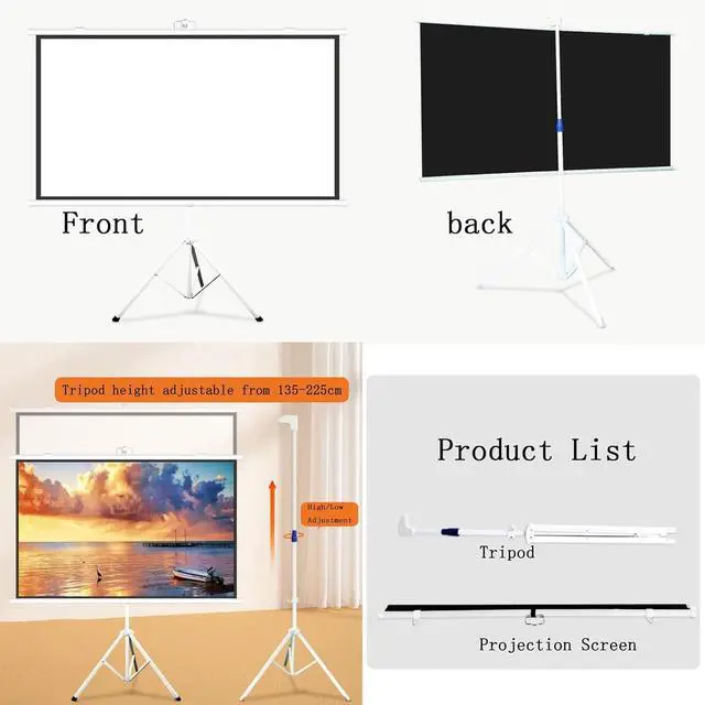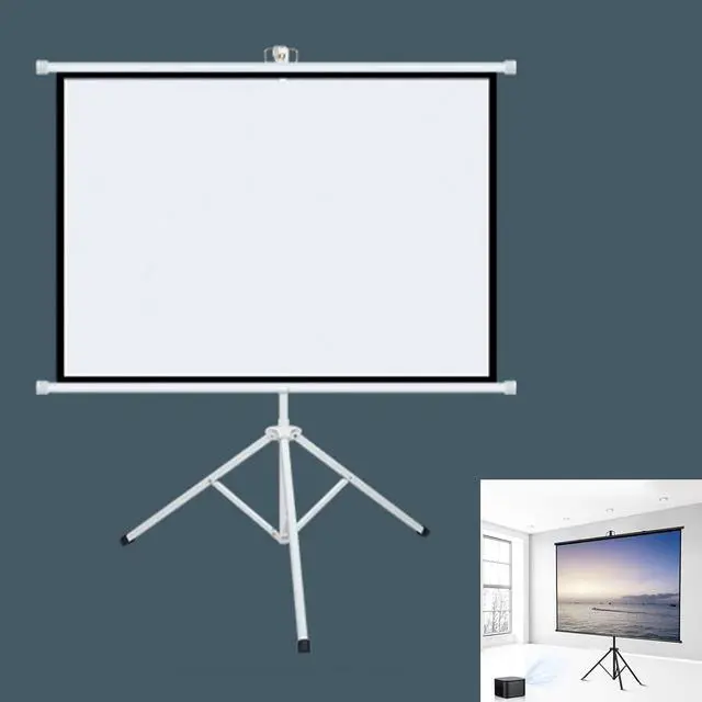 [White fiberglass projection screen] The tripod projection screen uses white fiberglass screen to provide clear images. The four black border design can enhance the image contrast and provide excellent image reproduction.