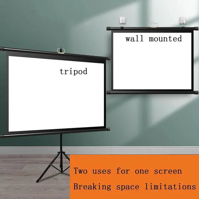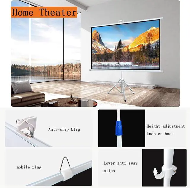 [Tripod Projection Screen] The tripod projection screen is height-adjustable and does not require any construction on the wall, as long as there is space to open the tripod, pull up the screen and hang it on the hook.