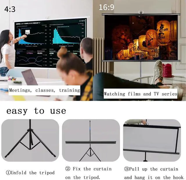 [Wide Application] The lightweight projection screen can be used in homes, schools, offices, churches, classrooms, gardens and various other places, such as presentation venues, conferences, weddings, parties, etc.