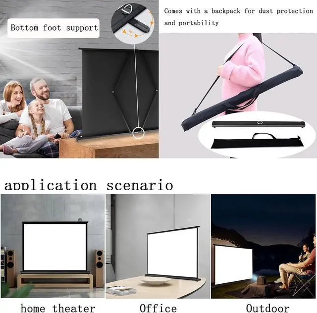 The casing of the projection screen is made of aluminum, with a compact design, beautiful appearance, lightweight body, and bottom support feet that allow the screen to stand on any type of flat ground or table.