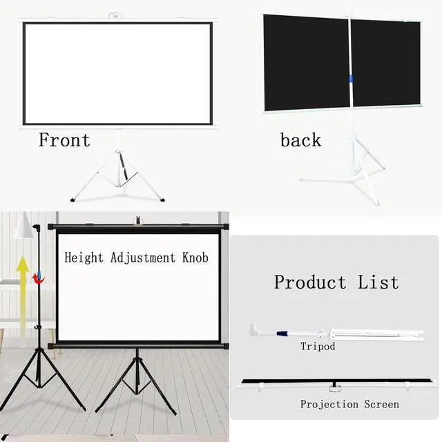 [Easy to Use] The tripod projection screen is height-adjustable and does not require any construction on the wall. It can be used as long as there is space to open the tripod. Just open the tripod, pull up the screen and hang it on the hook.
