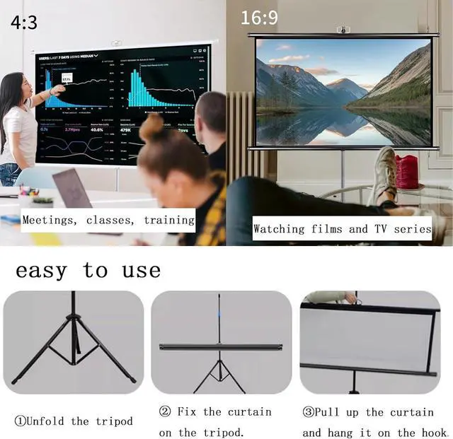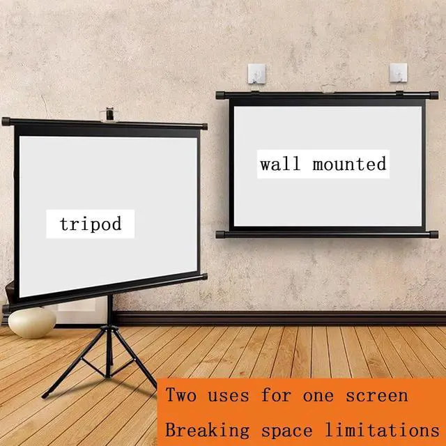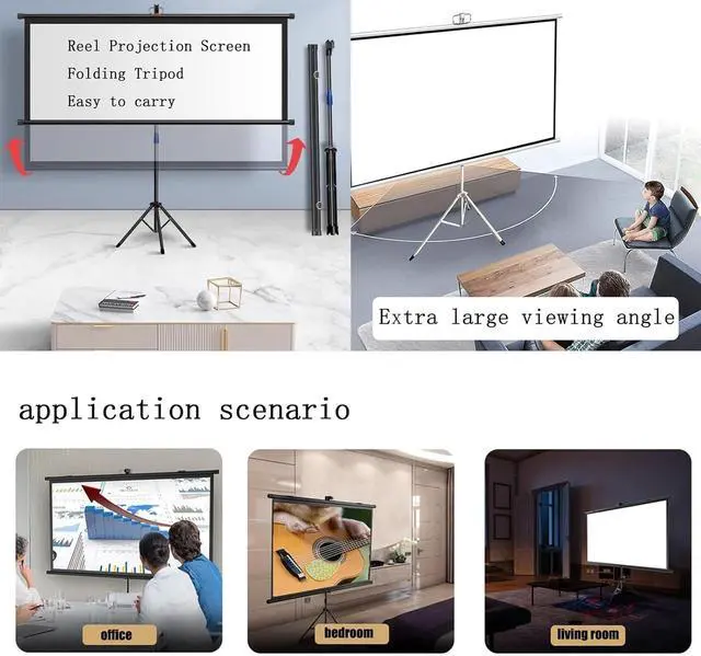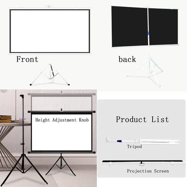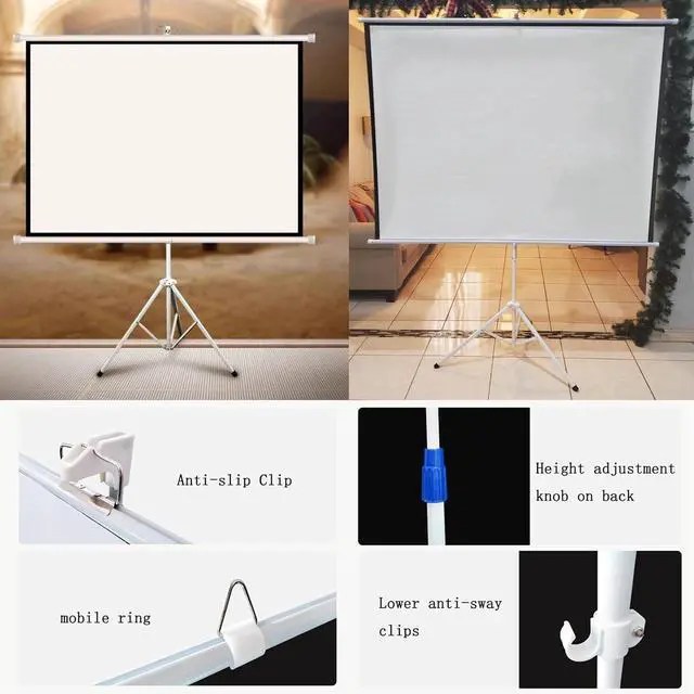 [Easy to Use] The tripod projection screen is height-adjustable and does not require any construction on the wall. It can be used as long as there is space to open the tripod. Just open the tripod, pull up the screen and hang it on the hook.