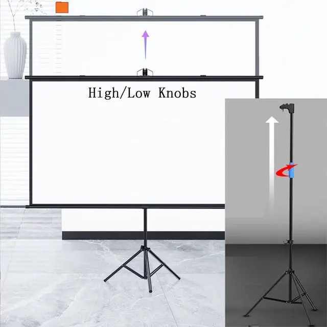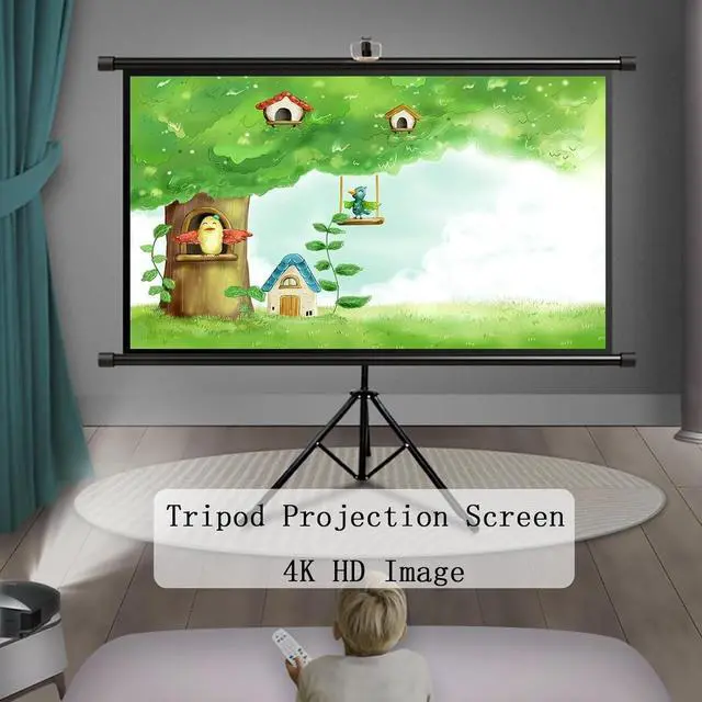 [4K HD Vivid Image] The tripod projection screen has a wrinkle-free surface, providing excellent image reproduction, and the four black side edges enhance image contrast, giving you a perfect viewing experience.