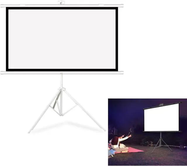 Package includes: projection screen x1, metal tripod x1