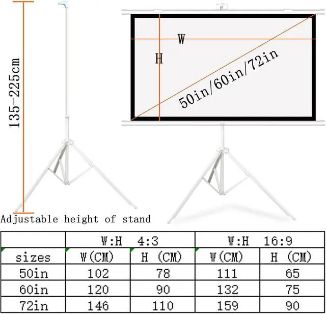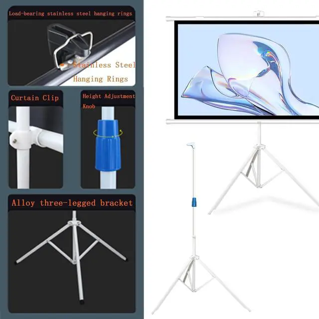 [Stable Tripod Support] The projection screen is designed with a sturdy tripod, and a simple height adjustment device, which is easy to install and remove regularly, and is very reliable. The stand is easy to assemble.