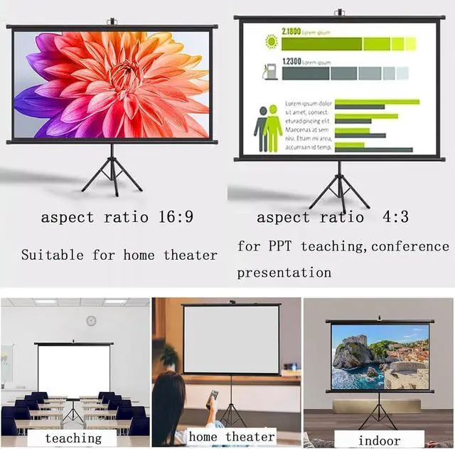 Projection screens in 16:9 and 4:3 formats are made of white fiberglass material that is soft, wrinkle-resistant, elastic, thicker than ordinary screens, and the projection colors are clearer.