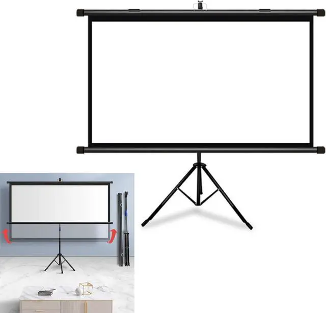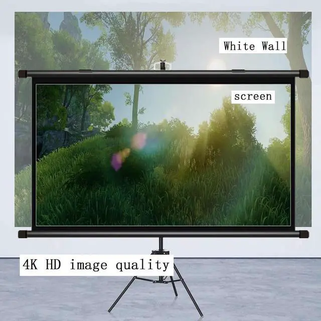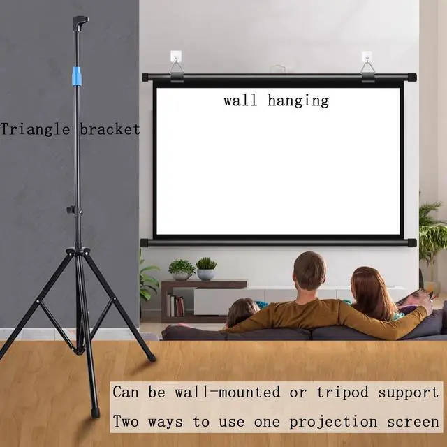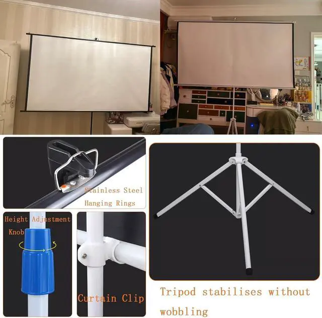 [Tripod Projection Screen] The tripod projection screen is height-adjustable and does not require any construction on the wall, as long as there is space to open the tripod, pull up the screen and hang it on the hook.