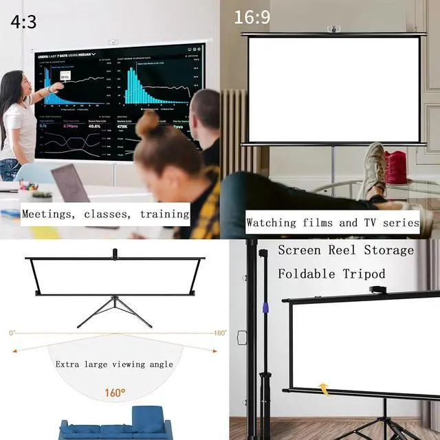 [Wide Application] The lightweight projection screen can be used in homes, schools, offices, churches, classrooms, gardens and various other places, such as presentation venues, conferences, weddings, parties, etc.