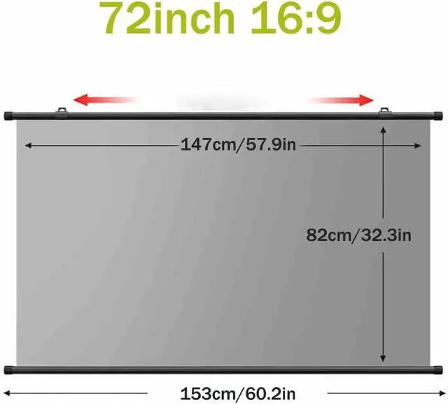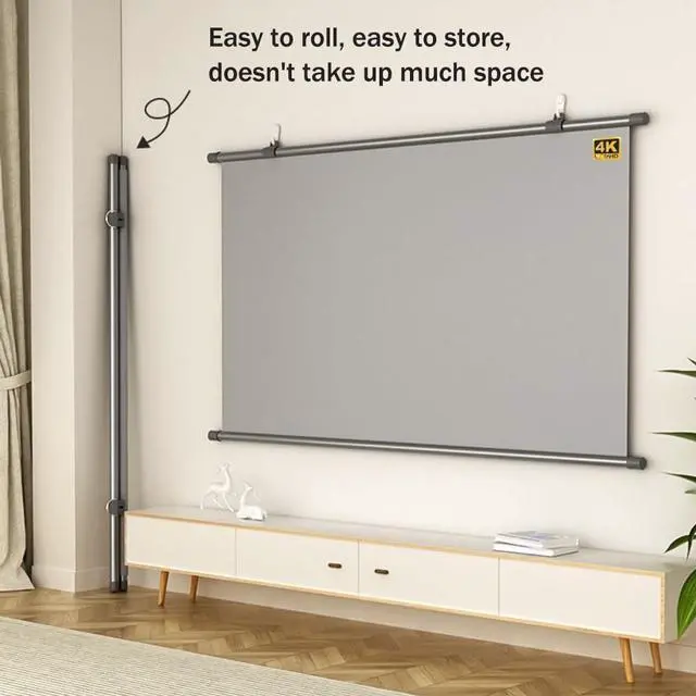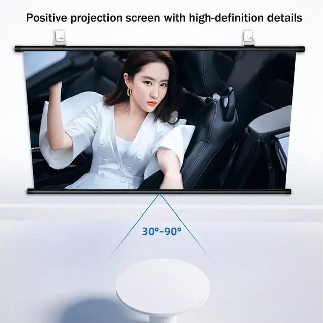 Easy to install: On the wall or ceiling. The projection screen is very easy to install, just stick the hook on the wall and hang the projection screen on it.
