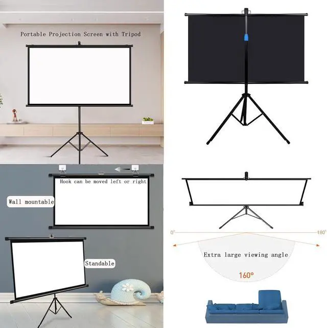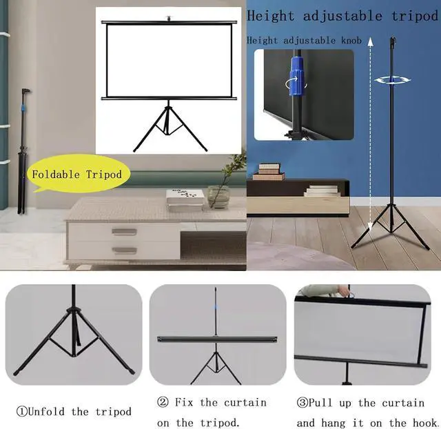 Easy to UseThe tripod projection screen is height-adjustable and does not require any construction on the wall. It can be used as long as there is space to open the tripod. Just open the tripod, pull up the screen and hang it on the hook.