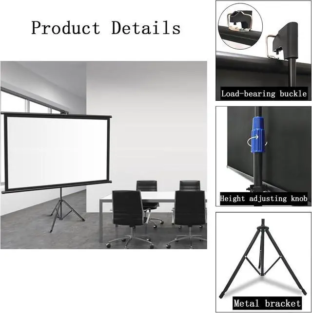 4K HD Vivid ImageThe tripod projection screen is made of high-quality white fiberglass, with a wrinkle-free surface that provides excellent image reproduction, and the four black side design enhances image contrast, giving you a perfect viewing experience.