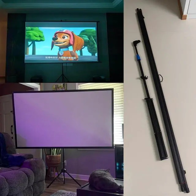 Wide ApplicationThe projection screen is suitable for home theaters, offices, conference room presentations, outdoor movies, and can also be used for presentations and other displays. You can easily enjoy a visual feast with family, friends and colleagues indoors or outdoors.