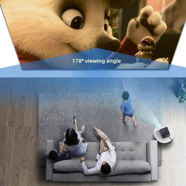 Ultra-wide Field of ViewThe projection screen has a wide viewing angle of 178°, and every angle can be clearly displayed, protecting your eyesight from fatigue.
