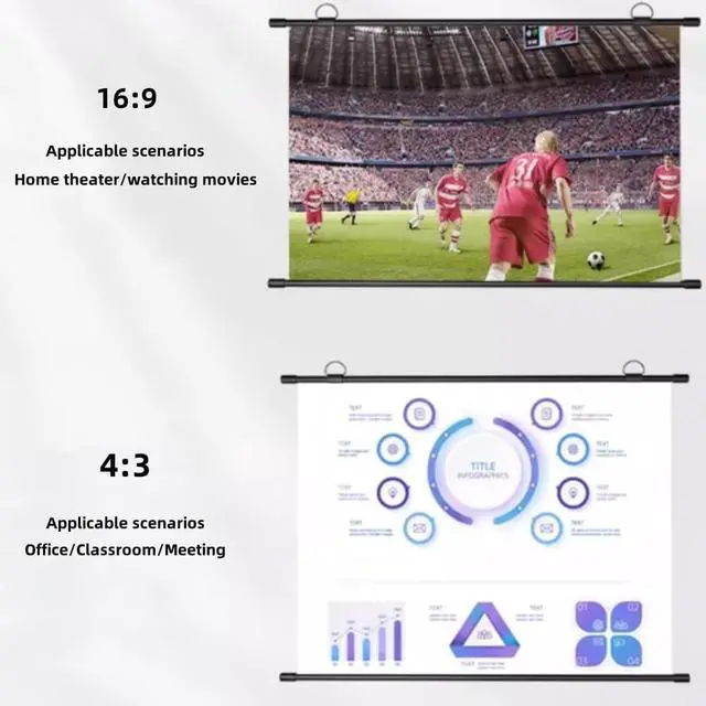 High-quality materialManual pull-down projection screen, made of high-quality white glass fiber material, restores the true color.