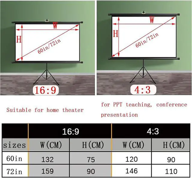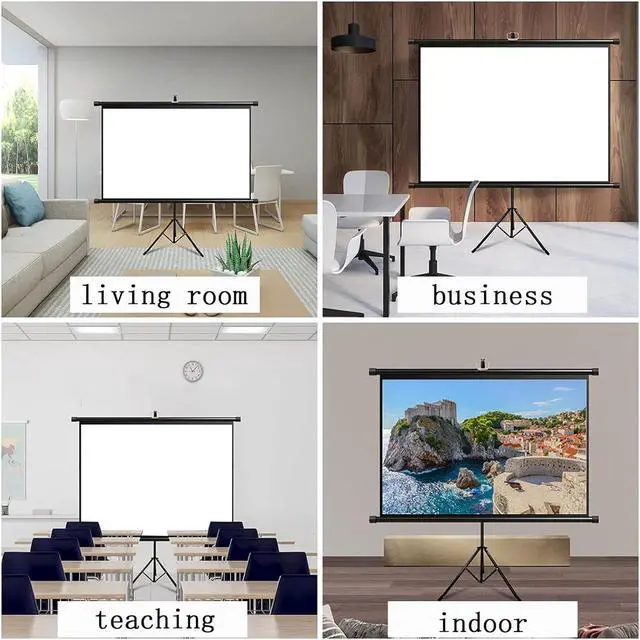 Package includes: projection screen x1, metal tripod x1