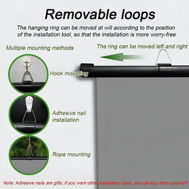 High Quality FabricThe projection screen is made of high-quality PVC polymer, which can be used for a long time without fading or deformation, thick and smooth, and wrinkle-free