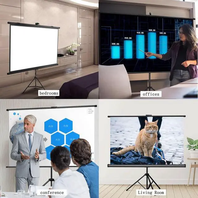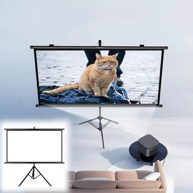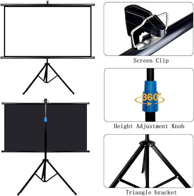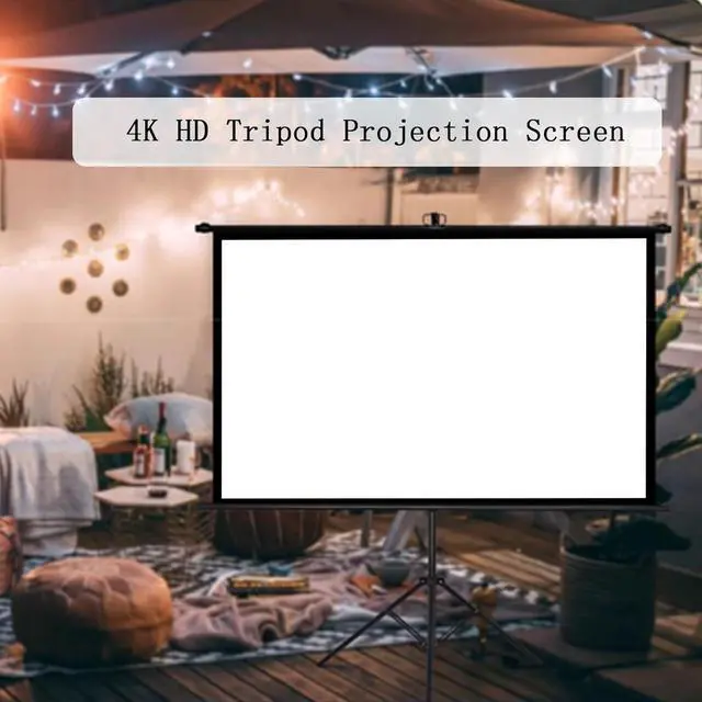 [4K HD Vivid Image] The tripod projection screen is made of high-quality white fiberglass with a wrinkle-free surface, providing excellent image reproduction, and the four black side design enhances image contrast, giving you a perfect viewing experience.