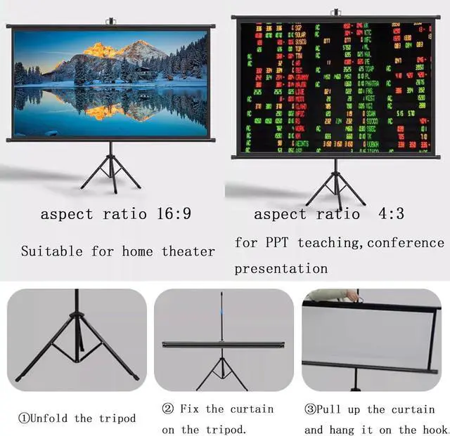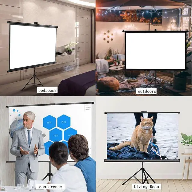 [Wide Application] The projection screen is suitable for home theaters, offices, conference room presentations, outdoor movies, and can also be used for presentations and other displays. You can easily enjoy a visual feast with family, friends and colleagues indoors or outdoors.