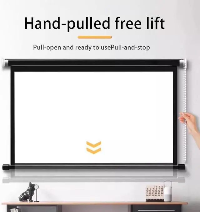 Hand-Pulled Projection Screen: our projection screen with hand-pulled lifting design, pull open can be used with the pull and stop, convenient and quick we reuse in life
