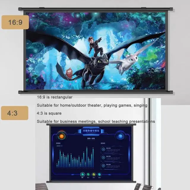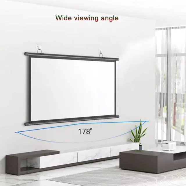Our manual projection screen is made of high quality white fiberglass material with a viewing angle of more than 178°, bringing you the best visual effect and providing the ultimate home theater experience. And our products are rolled design, which can be easily carried and used indoors or outdoors.