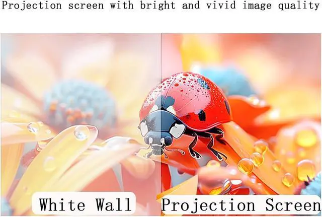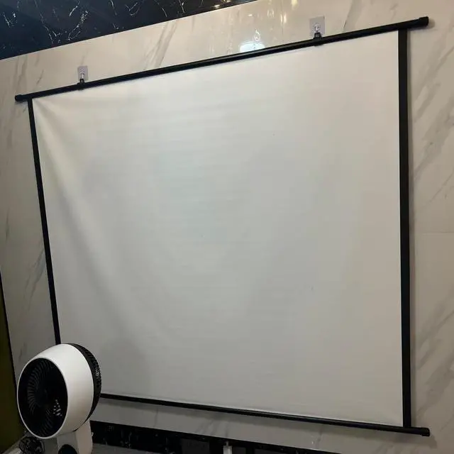The projector screen is made of white fiberglass material that is soft to the touch and highly elastic, ensuring that it is 100% wrinkle-free after folding or compressing, resulting in clearer images, brighter colors, and no color cast.