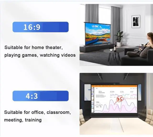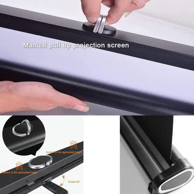 Self-supporting pull out projection screen for easy storage and storage. Easy to carry on the go. Can be used for home/office/classroom/outdoor camping, traveling, etc.