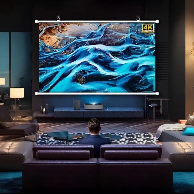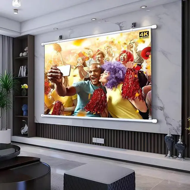High-quality matte white screen: The projector screen is made of matte white polyester material, which gives you vivid color reproduction of the projected image. The black backing reduces light penetration and has vertical stretching of a smooth, wrinkle-free surface