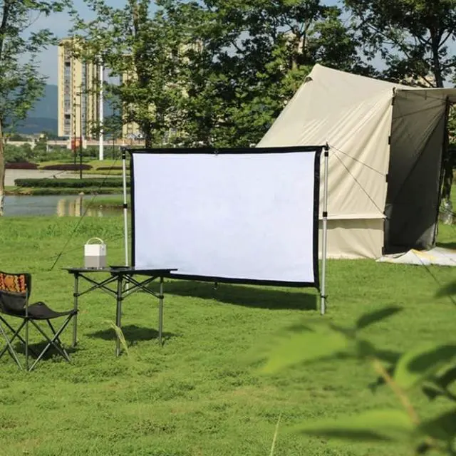Outdoor movie screens are easy to store and carry. The projection screen is made of synthetic durable polyester. Easy to carry, it can be packed in a backpack or bag for easy transport.