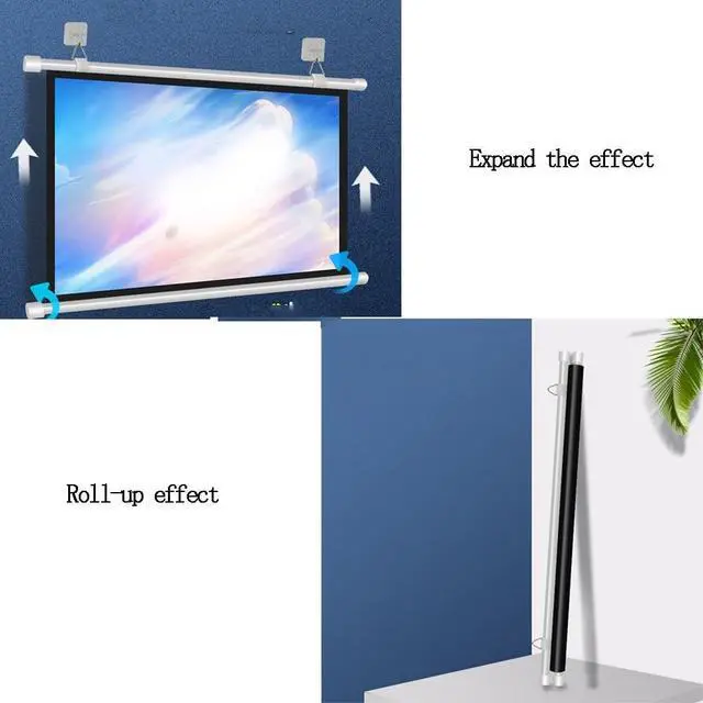 The home theater projection screen's hanging rings move left and right, it is lightweight, and can be installed on the wall or ceiling to save space.