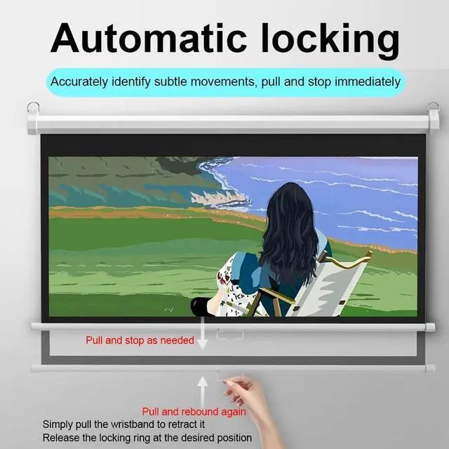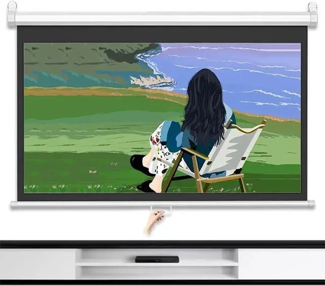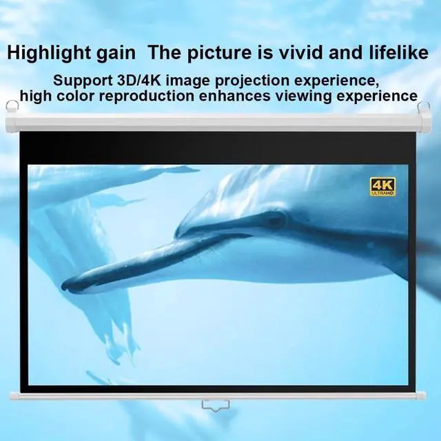Professional manual projection screen, 60/72 inches, format: 4:3/16:9, can be installed on the wall or ceiling. There is a 3 cm black border, which increases the contrast and makes it easier to adjust the picture. The back of the canvas is black and opaque. The projected light remains bright and has strong colors.