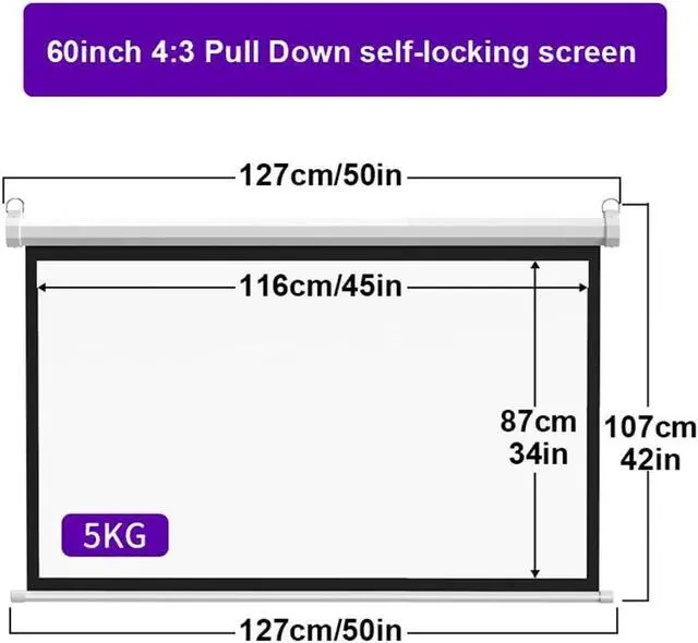 Product weight: 60inch-4:3: 5kg, 60inch-16:9: 5.5kg, 72inch-4:3: 5.8kg, 72inch-16:9: 6.3kg