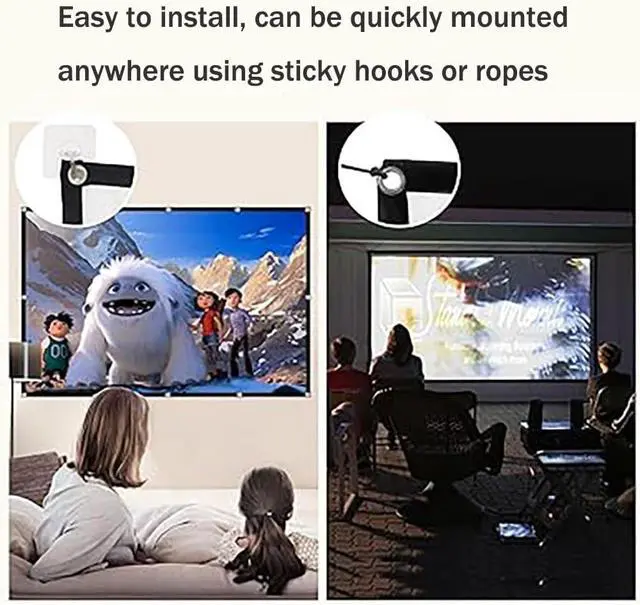 Easy to Install: This outdoor movie projector curtain comes with all the necessary tools (hooks and cords), the whole installation process is very simple, one person can finish the installation in just a few minutes.