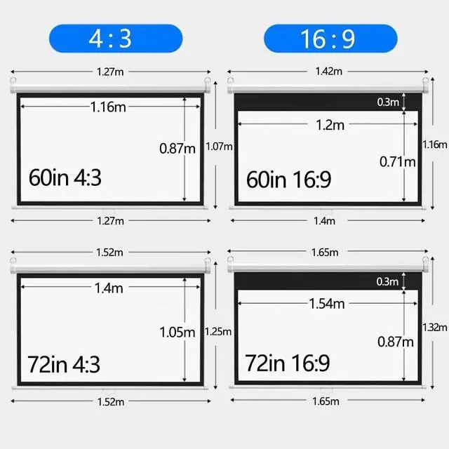 Size: 60" 72" projection screen, providing 16:9/4:3 aspect ratio, can be used for different scenes