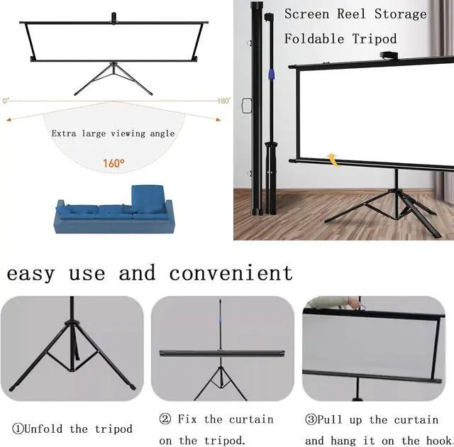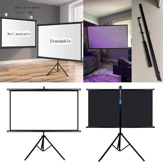 [Easy to Use] The tripod projection screen is height-adjustable and does not require any construction on the wall. It can be used as long as there is space to open the tripod. Just open the tripod, pull up the screen and hang it on the hook.