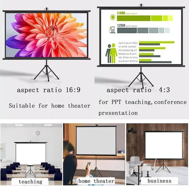 [Wide Applicability] The projection screen can be used indoors or outdoors, suitable for lawns, squares, department stores, exhibitions, outdoor, offices, classrooms, training, club games, home theaters, etc.
