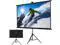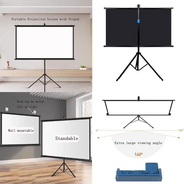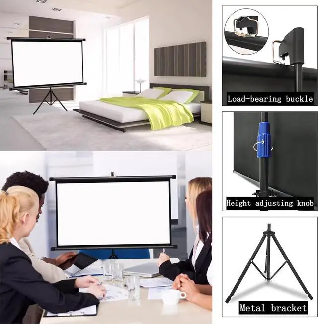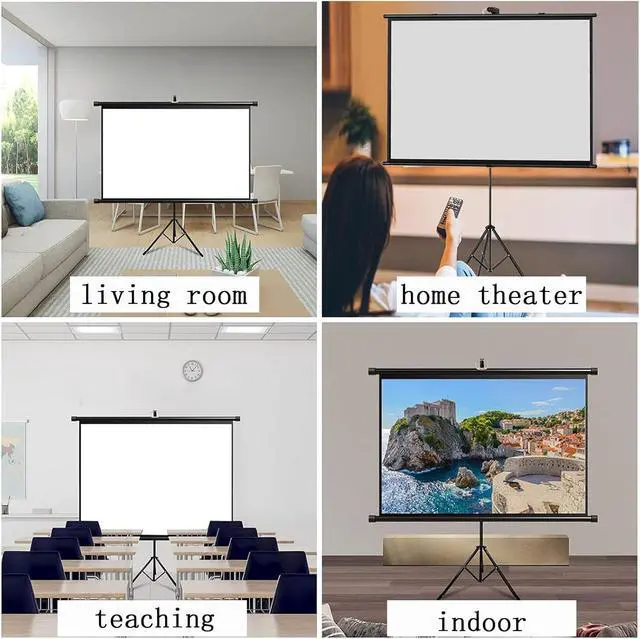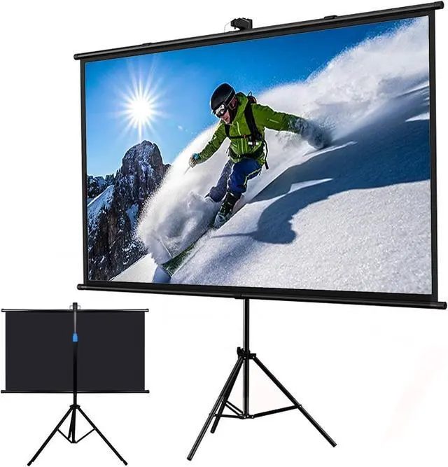 Portable Projection ScreenThe projection screen has a roll-type storage design and a foldable tripod. The screen can be taken anywhere and easily placed in the trunk of the car. It can be conveniently used for traveling with the family, camping or backyard movie nights, etc.