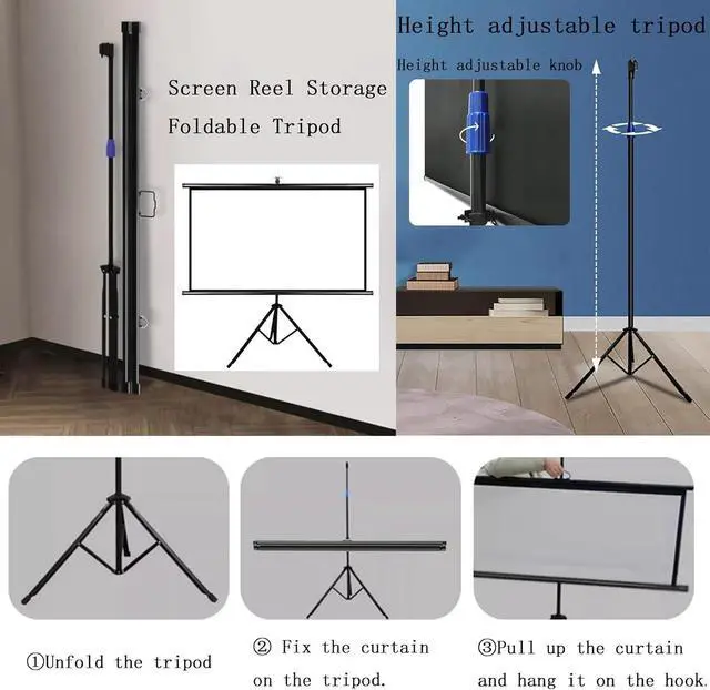 Wall Mount/TripodThe projection screen can be used on a tripod or wall mounted, both ways can meet your needs, stabilize the screen and provide a better viewing experience.