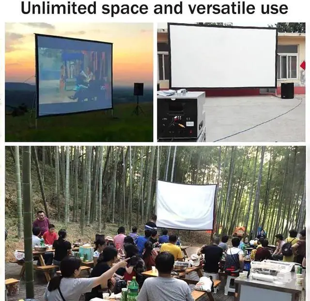 Thick Material: The projection screen is made of soft and thick polyester fabric, which provides a clear picture and avoids light reflection, bringing you and your family a high-definition visual experience.