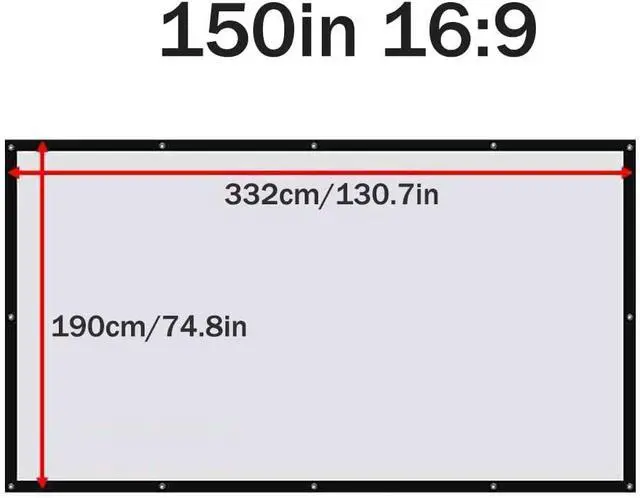 Size & Format 60-150 inches projection screen, 16:9/4:3 aspect ratio, projection screen supports 4K and Full HD pictures. Ultra-wide viewing angle projection, you can choose the most comfortable angle to enjoy movie night.