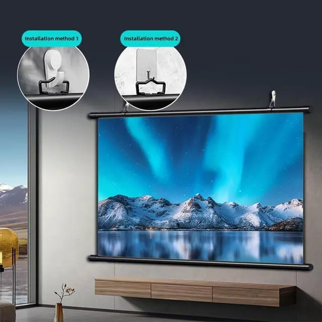 Easy to InstallThe manual drop-down projector screen can be easily set up and can be mounted on the wall, which is sturdy and durable.