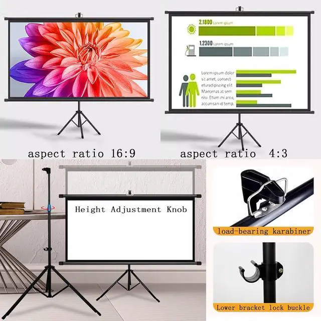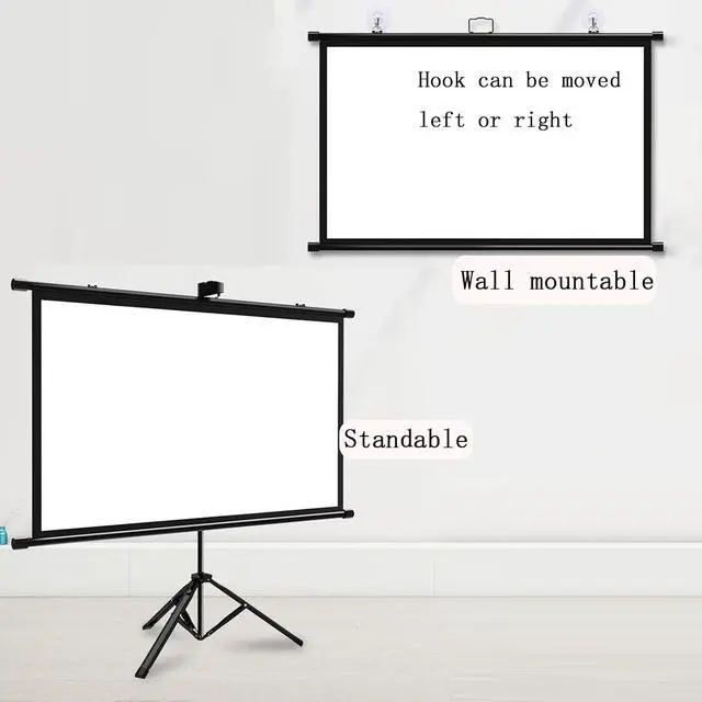 Easy to UseThe tripod projection screen is height-adjustable and does not require any construction on the wall. It can be used as long as there is space to open the tripod. Just open the tripod, pull up the screen and hang it on the hook.
