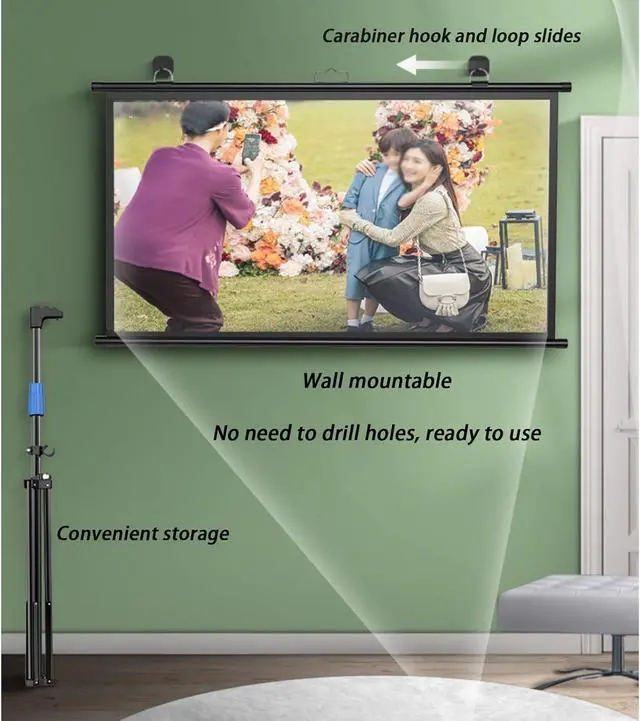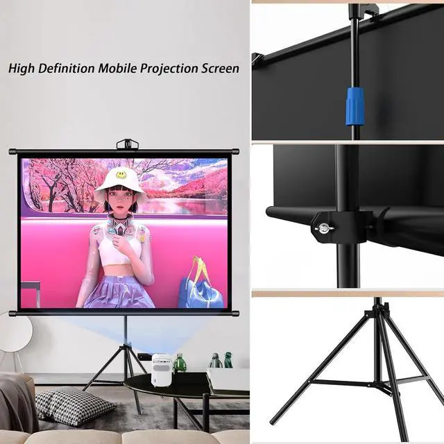Bracket curtain projection cloth floor-standing mobile portable bracket pole without punching can be wall-mounted 60-inch 72-inch home high-definition bedroom projection screen outdoor projector screen office screen. Home theater high-definition projection screen, wall-mounted design, easy to carry, supports 3D projection quality, High-definition imaging, storage does not take up space.