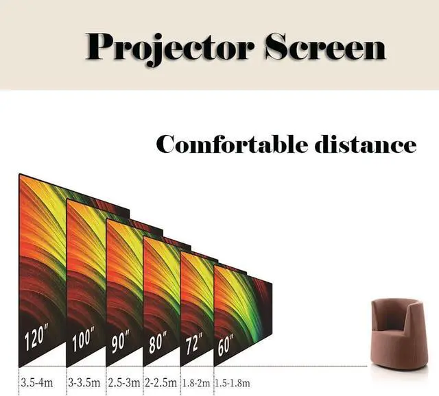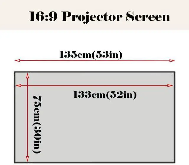 The 60-inch (135 x 75cm) projection screen has a smooth surface and a narrow black frame to enhance the image effect