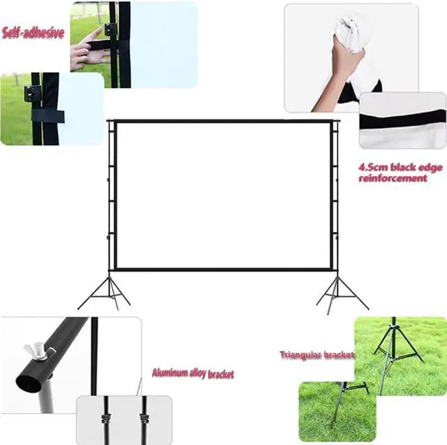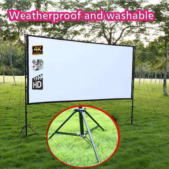 Portable: Outdoor projection screen with stand folds down into a tote bag, small enough to fit easily in the trunk of your car and take anywhere you want