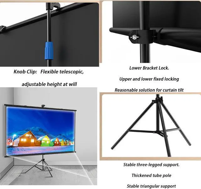 Projection Screen and Stand: The sturdy tripod stretches, folds and adjusts to keep the entire screen structure stable, especially when used outdoors. The stand is retractable and the viewing height can be adjusted at will, and can be raised to 2.1 meters.