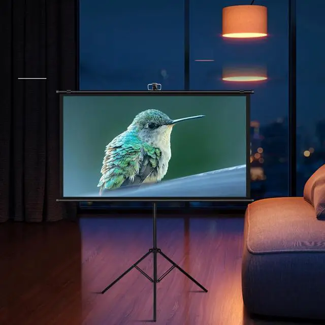Projector screen: This projection screen with a stand has two ratios: 16:9 rectangular ratio, suitable for home use/watching movies and TV, etc. 4:3 square ratio, suitable for office/conference teaching, etc., ideal for courtyard movies/cinema/outdoor movie screenings.