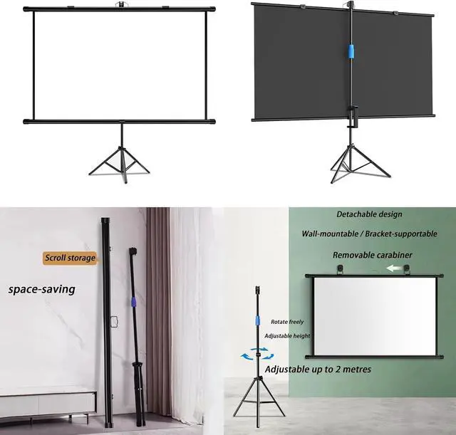 Easy and quick installation: This screen projector with stand is designed to be easy to install and can be assembled in just a few steps without any tools. This portable projector screen with stand fits most projectors, making it the perfect mobile projection solution for professional or personal needs