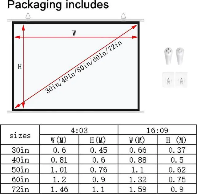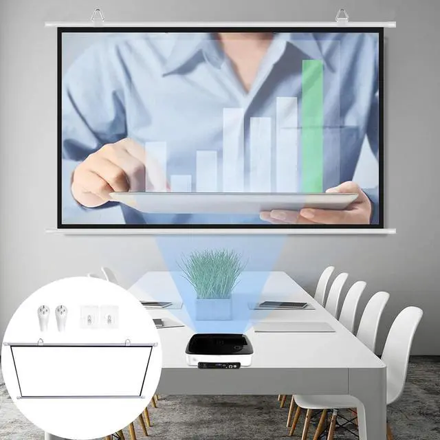 The projector screen can be quickly installed and used without tools. It comes with 2 hooks and 2 non-marking nails, which can be quickly installed and used without using other tools. (Adhesive hooks can only be used on ceramic tiles, wood, marble, and glass walls)